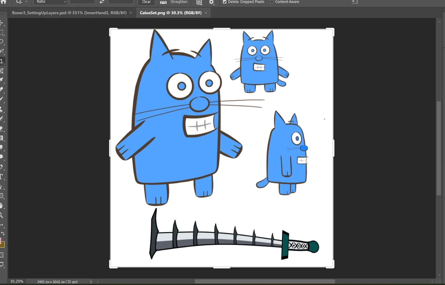 Making 2D character Illustration to be used in game, each moving part is separated.