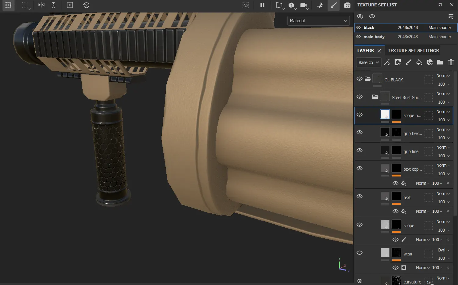 Baking the high details into the optimized model and creating textures for the model using substance painter