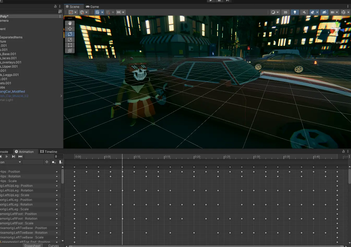Character setup in unity with visualizing the rig and setting up the hierarchy.
